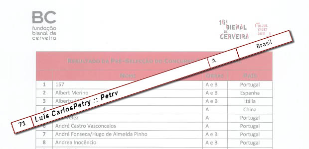 O projeto de participação na Bienal foi submetido no final de março de 2011 e, em maio de 2001 saiu o resultado dos selecionados para a Bienal de 2011. Nosso projeto artístico-filosófico de uma game acedêmico-conceitual estava entre os selecionados para a Bienal de Artes de Cerveira de 2011.